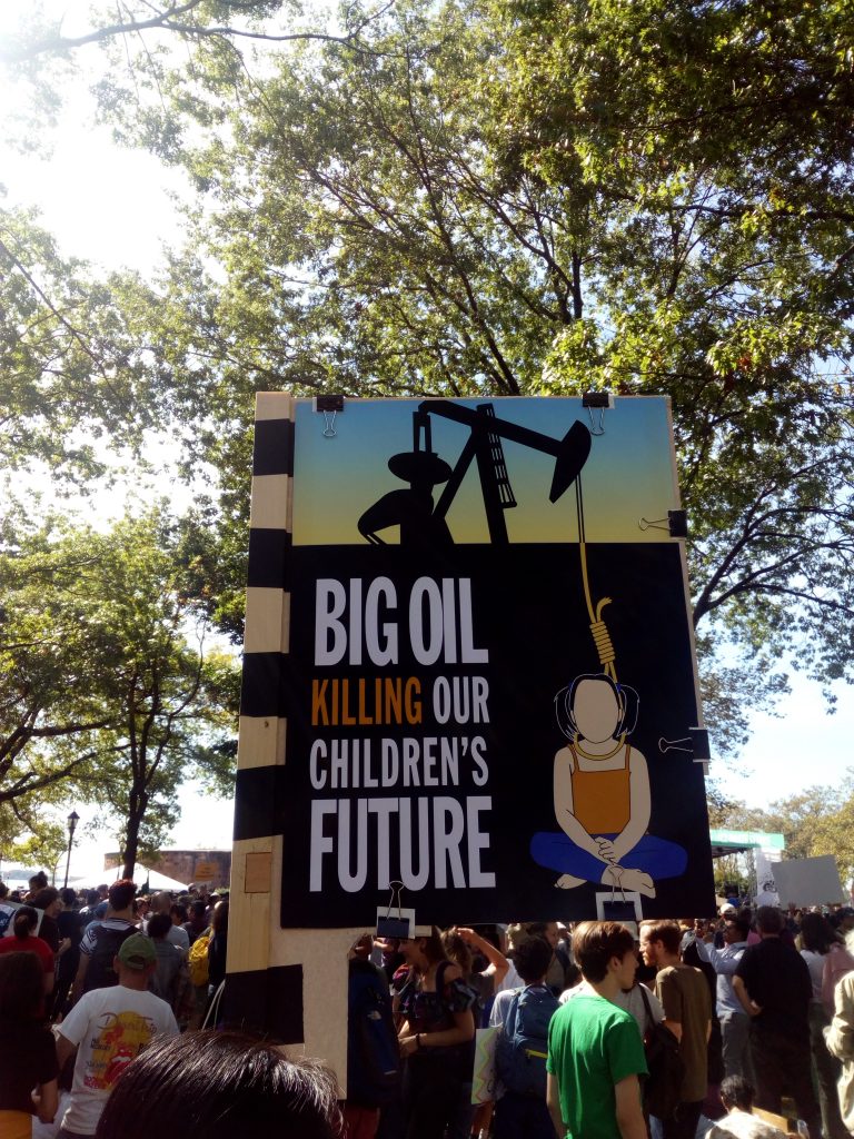 The true ‘historic moment’ I was part of actually took place before and outside the UN premises. I’m referring here to the Climate strike and march held in downtown Manhattan on Friday 20th of September. Attended by 250.000 people, this was an unprecedented experience. I witnessed (and participated in) a very diverse colorful movement of young people with different backgrounds, ethnicity, sexuality, income, nationality and education. A great amount of middle-aged and elderly people had joined them, showing solidarity with the youngsters. This crowd was angry and enraged about the climate policies and their current gridlock in American politics. Helicopters and drones were flying over, monitoring the crowd. The people who spoke, and performances that took place, linked the climate resistance to the legacy of the indigenous rights tradition, anti-slavery and the civil rights movement, the more recent Black Lives Matters and #MeToo fights as well as broader ecological and social justice struggles. This was wonderful to see. It was highly intersectional and socio-political, and demands were very clear: “Our world is burning”. Political, societal and corporate powers neglect to address the issue. We will stop this! Indigenous groups from the Amazon spoke about the fires there, the president of the NY state nurse association stressed that the wounds of the people and the planet need to be healed. Greta Thunberg also spoke. Her appearance and message have near messianic proportions by the way she urges us all to strike and stop the status quo. Remarkably – and I scanned for it – I didn’t see any sign of, or any one speaking about, the SDGs. For the Climate Strikers, these simply don’t matter.