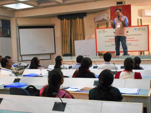 The KEYSTONE course is part of a broader eponymous multi-partner initiative that seeks to develop much needed health policy and systems research capacity in the country. The Public Health Foundation of India, as Nodal institute for the WHO’s Alliance for Health Policy and Systems Research in India, is coordinating the KEYSTONE initiative. The ongoing short course (23 February – 5 March 2015) entails intensive immersion for twenty KEYSTONE Fellows, selected through a national competition, in HPSR frameworks and approaches.