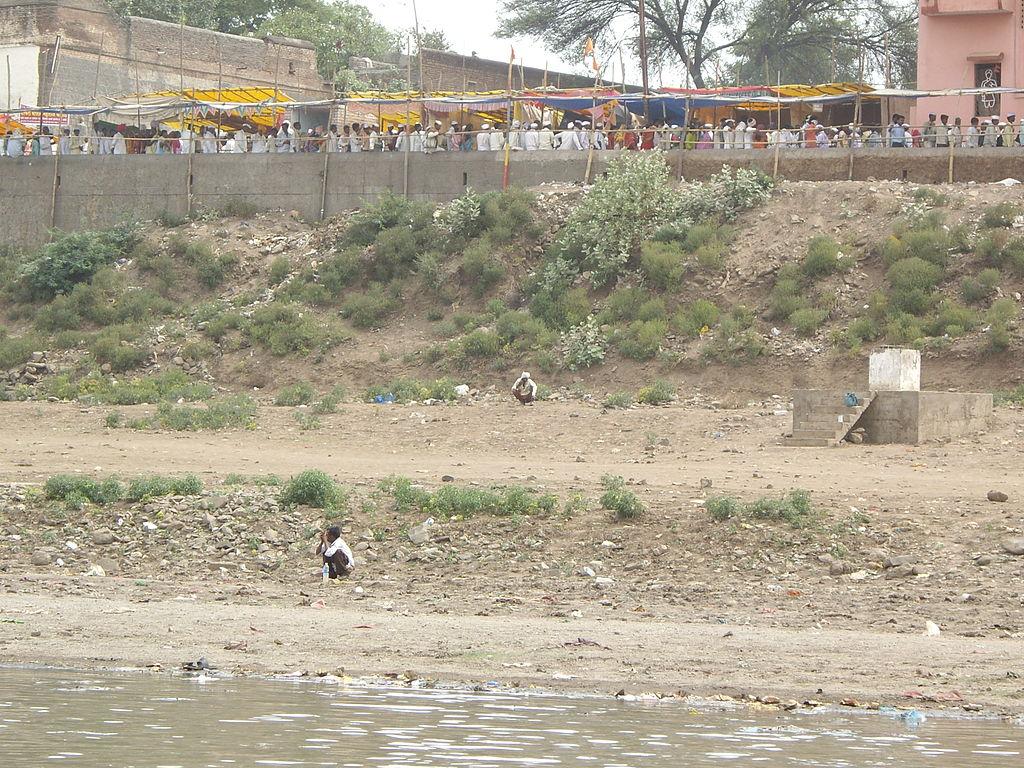 Title: Open defecation and contamination of water bodies (Original description: Many people defecate on the banks of the holy river. above is the line to the temple. Photo by Yaniv Malz in mid 2008.); Source: From Wikimedia Commons; Author: The Sustainable Sanitation Alliance (SuSanA).