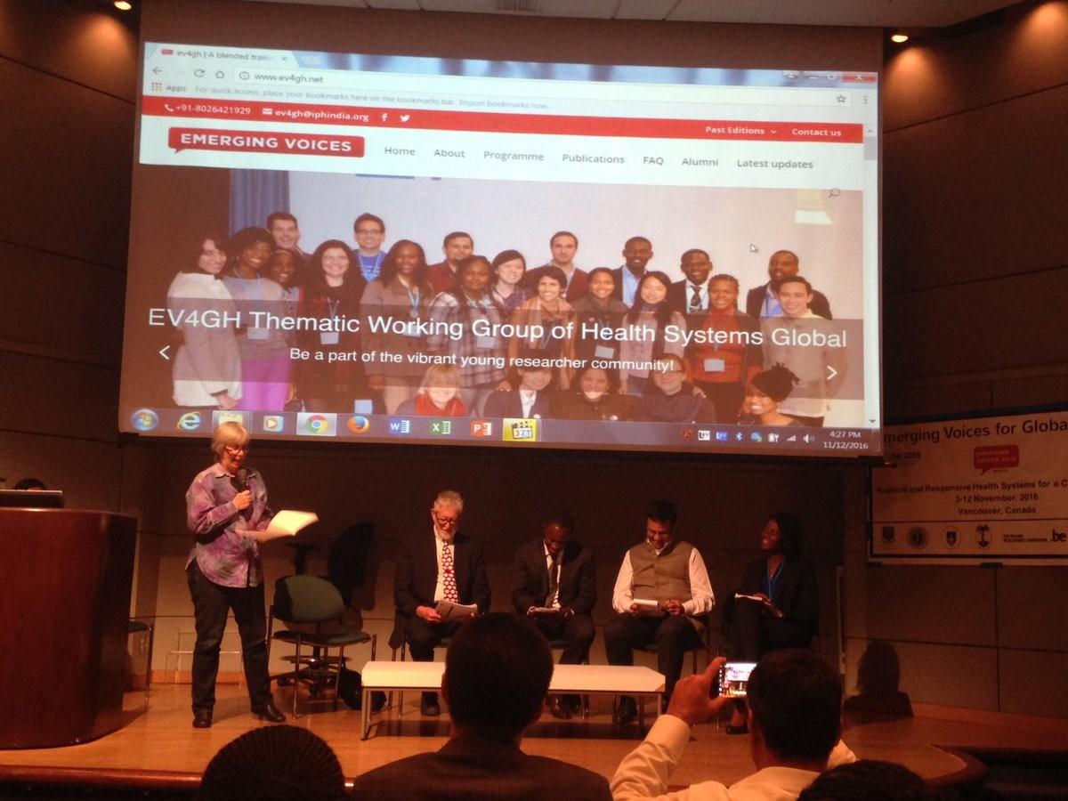 The stage had been set: early November 2016, the Emerging Voices for Global Health 2016 (EV4GH) program reached Vancouver, to train before the fourth Global Symposium on Health Systems Research (HSR 2016). The EV4GH program is a multi-partner blended training program for young health policy & systems researchers, decision-makers and other health system professionals. It is also one of the thematic working groups of Health Systems Global now, and organized in parallel to the biennial global health systems research symposium. After the online distance coaching which preceded the face-to-face training, 40 brand new EVs from all over the globe arrived in Vancouver, already familiar with each other through their virtual interactions, excited and ready to get to know each other in person.