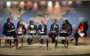 Panelists including Mariângela Batista Galvão Simão, WHO Assistant Director-General for Drug Access, Vaccines and Pharmaceuticals, discuss the importance of collaboration for innovation.