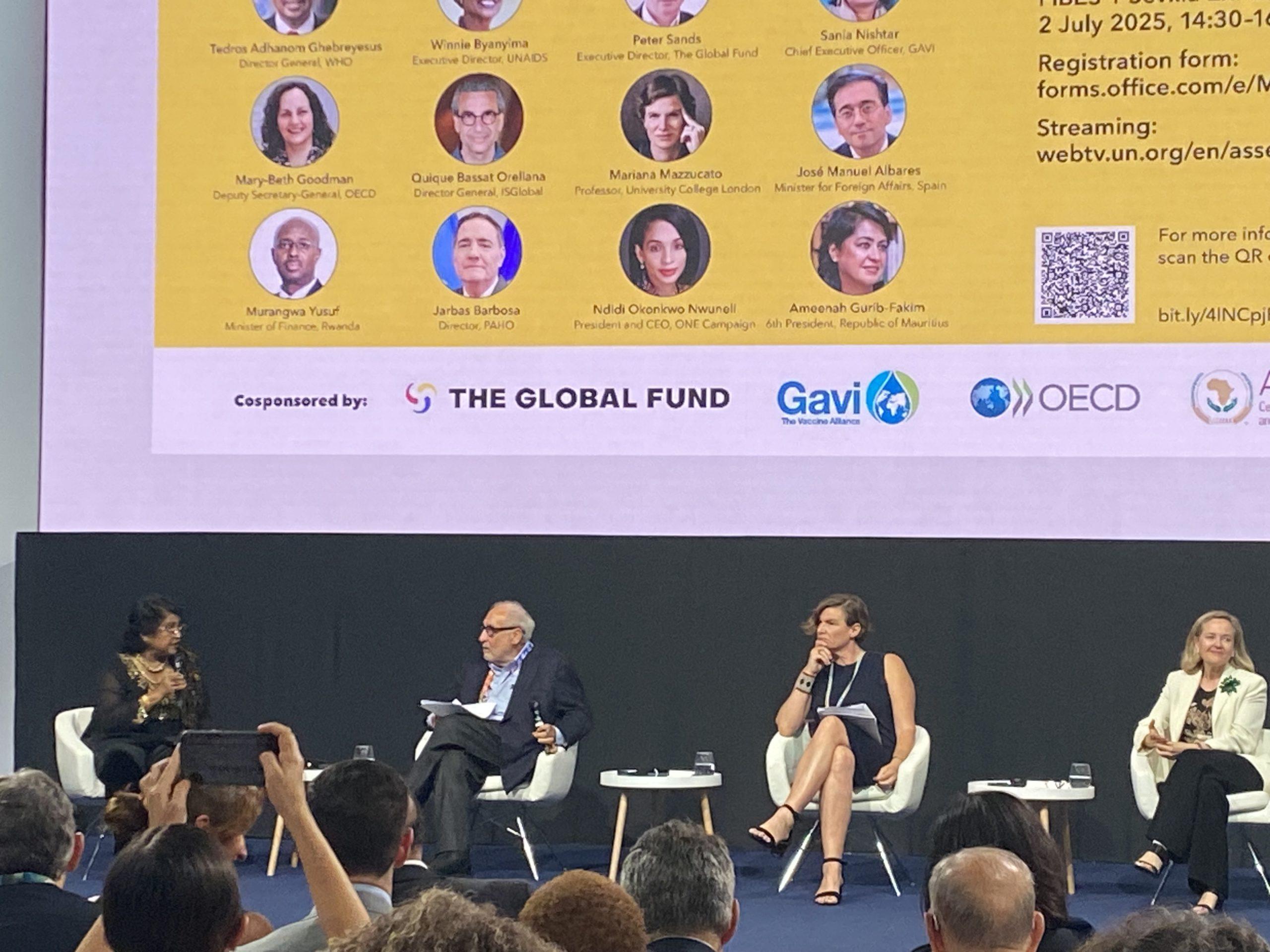 Domestic resource mobilization to finance the SDGs dominated the side events at FFD4. Given the decline in ODA we are facing, domestic resource mobilization is critically important for global health. Many side events focused on blending of private and public finance to address SDG investment. These forms of finance are very promising for the development of renewable energy and infrastructure (which can provide attractive returns to private investors). But most of the required investments in public health systems provide long-term, society-wide returns that are not “bankable” (don’t provide a clear revenue stream to private sector investors). Blended finance for global health is likely to involve a mix of philanthropy, solidarity levies, donor funding and public finance with private finance playing a role in very specific infrastructure projects.