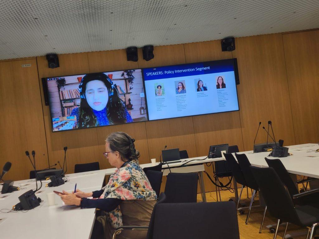 Themed “Moving from intentions to transformative change: strengthening leadership and gender equality in global health and within health system”, the session advocated for adopting a gender transformative lens to strengthen leadership as well as to ensure we are adopting a gender lens to address the issues faced by health systems. The session brought together a diverse panel including a feminist full house of nine speakers (Sonja Tanaka, Johanna Riha, Rosemary Morgan, Faith Nekabari Nfii, Nelly Munyasia, Hamaiyal Sana, Susana Ku Carbonell, Reem Elsayed) to discuss gendered realities from the perspectives of health system policy leaders as well as the healthcare workers at the frontlines themselves. The key questions addressed by the session included: