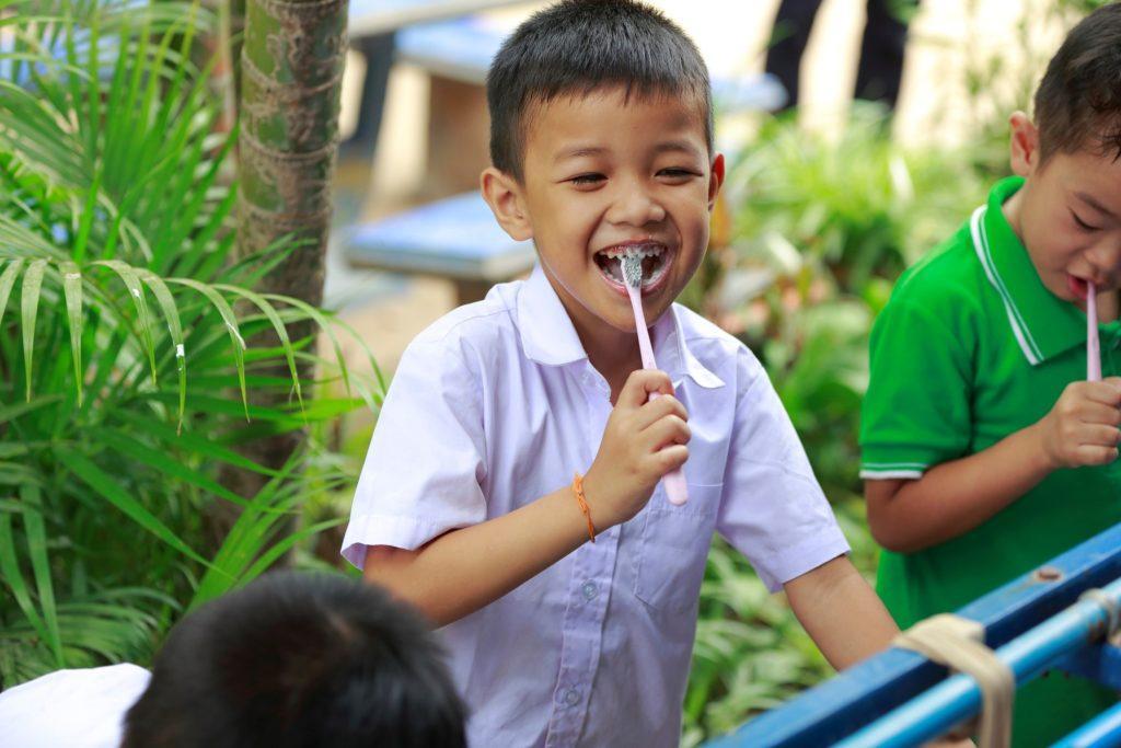 School group toothbrushing in Laos PDR © GIZ Fit for School Programme/Ivan Sarenas