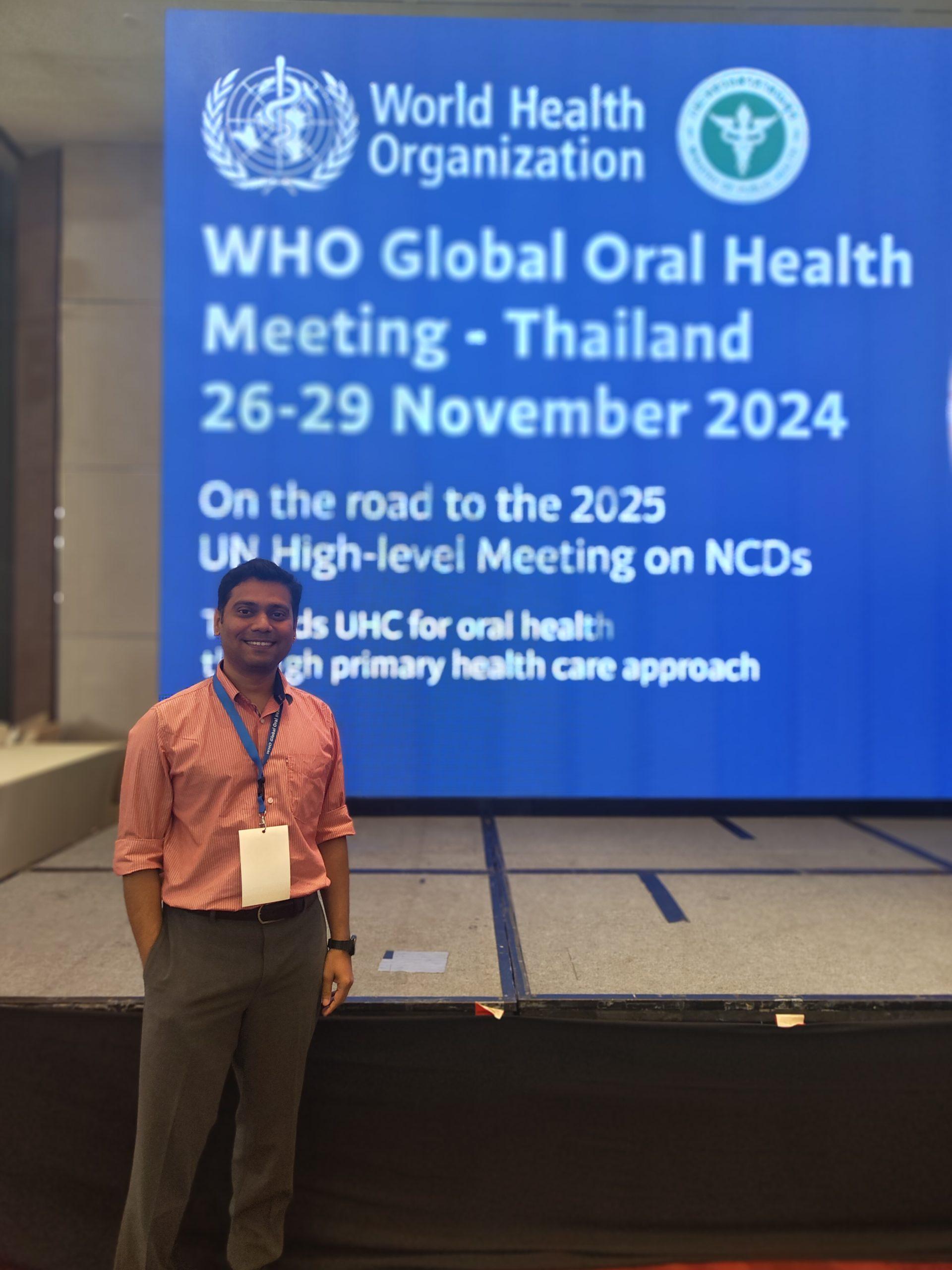 Without any question, the Bangkok meeting marked an important milestone for oral health advocacy. By convening diverse stakeholders such as WHO Regional Directors, Health Ministers, Chief Dental Officers, government representatives of over 110 countries, and Non-state Actors (NSA) such as academics and non-governmental organisations, WHO also demonstrated a renewed commitment to integrating oral health into broader health systems. Many of the discussions stressed how oral health is deeply intertwined with Universal Health Coverage (UHC). Other discussions showed that addressing oral health inequities in LMICs also requires confronting social determinants such as poverty & education. A major highlight was also the emphasis on global health diplomacy in tackling oral health inequities.
